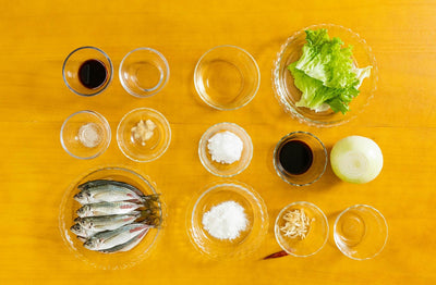 • ・アジはえら・ゼイゴ・内臓を除いて下味Ⓐをつけて10分置く。