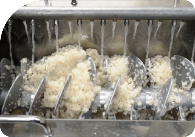 お米にシャワーを掛けながらスクリュー羽根を回転させて洗米します。