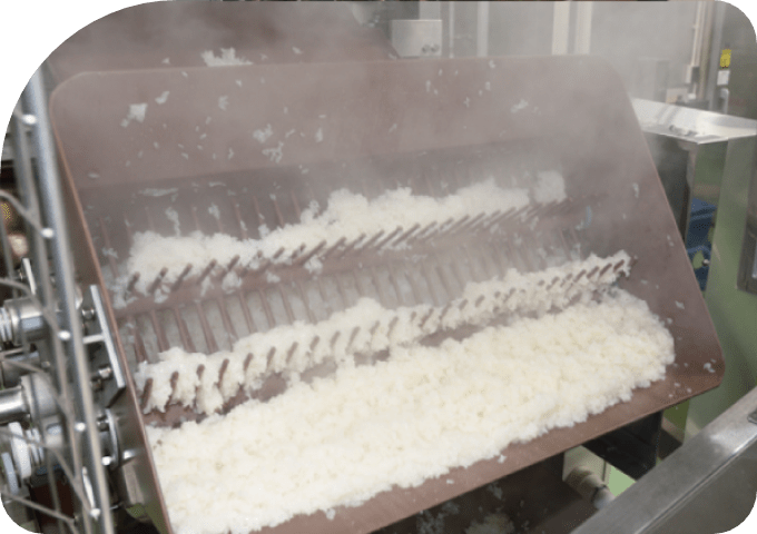 ・1食あたり100gとした場合4,200食/時間- ・集中排気と断熱構造で、 炊飯室の作業環境を改善。