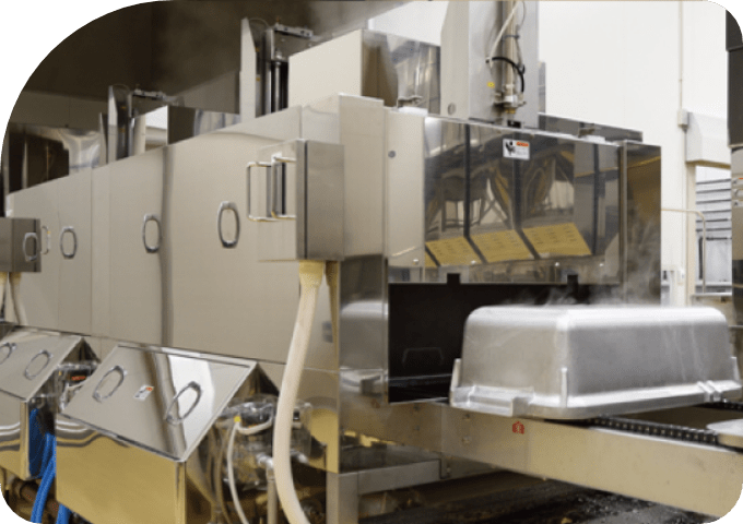 高圧噴射の高温湯による洗浄、さらに仕上げ洗浄により、炊飯釜のしつこい汚れや油脂、澱粉などもスッキリ洗い落します。