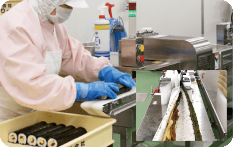 ごはんの密度とほぐしにこだわり、ふっくらやわらかな握りで成形できる最新鋭のおにぎり成形機を採用。 美しいさにこだわったおにぎりをお届けします。
